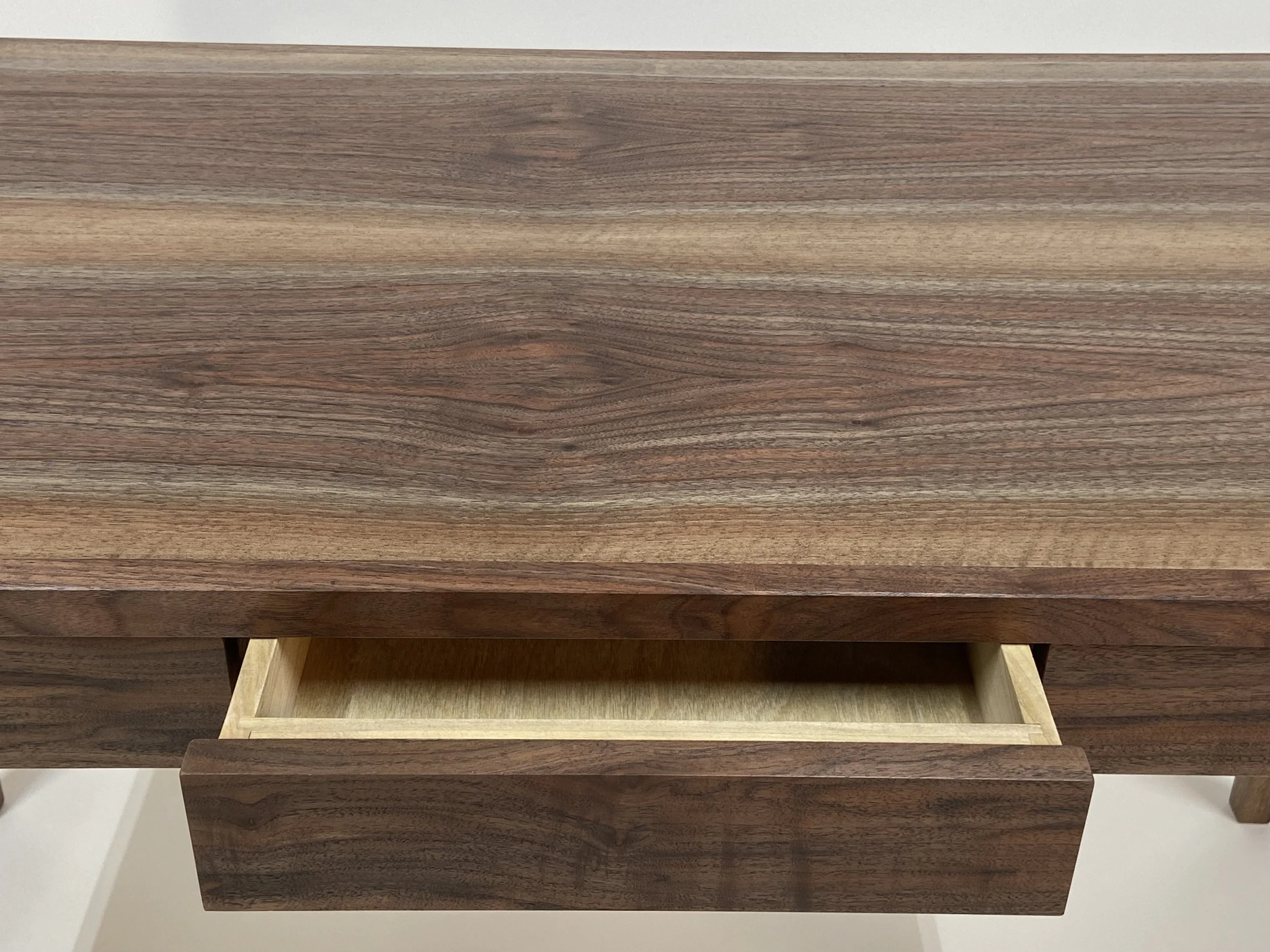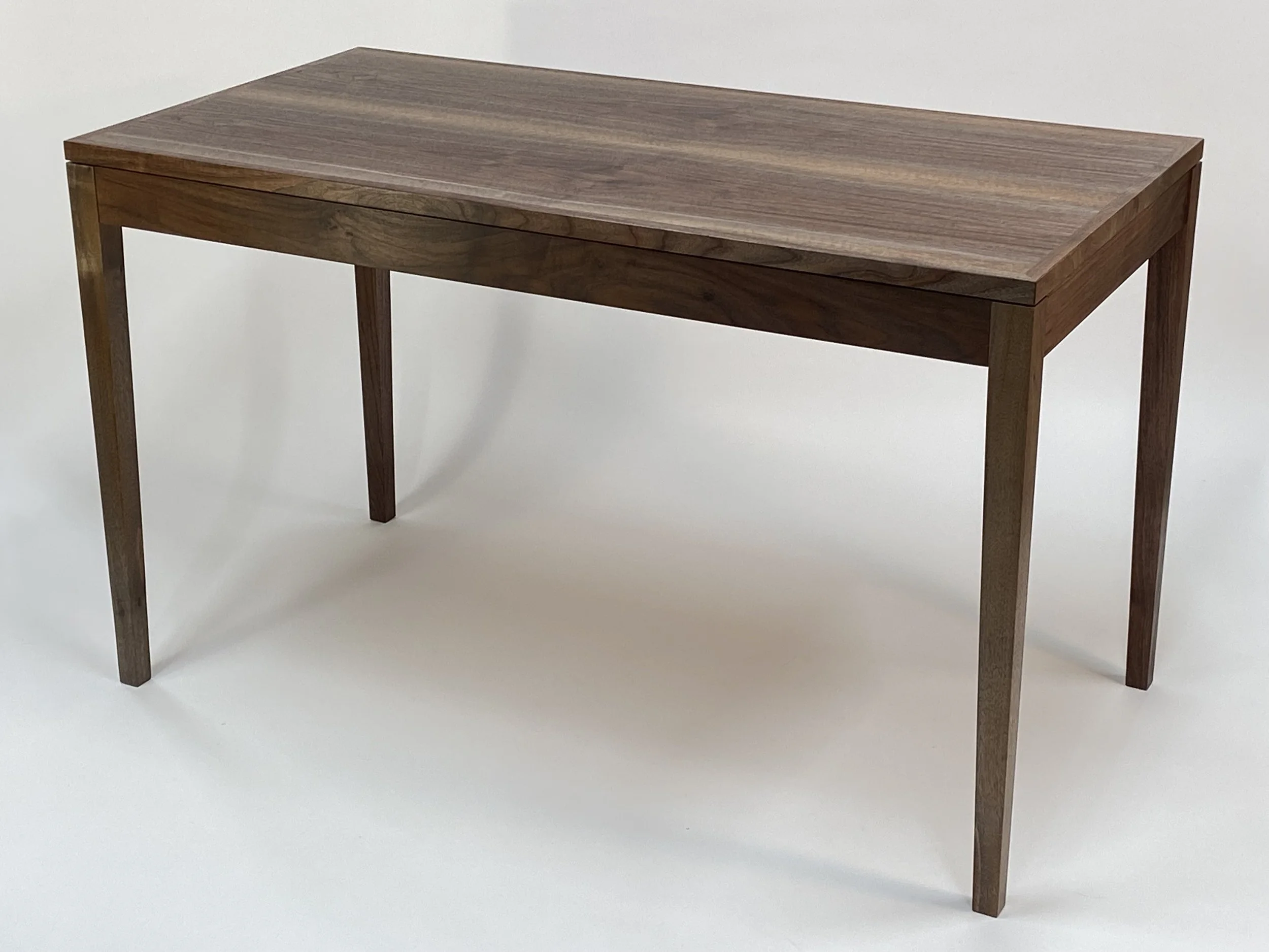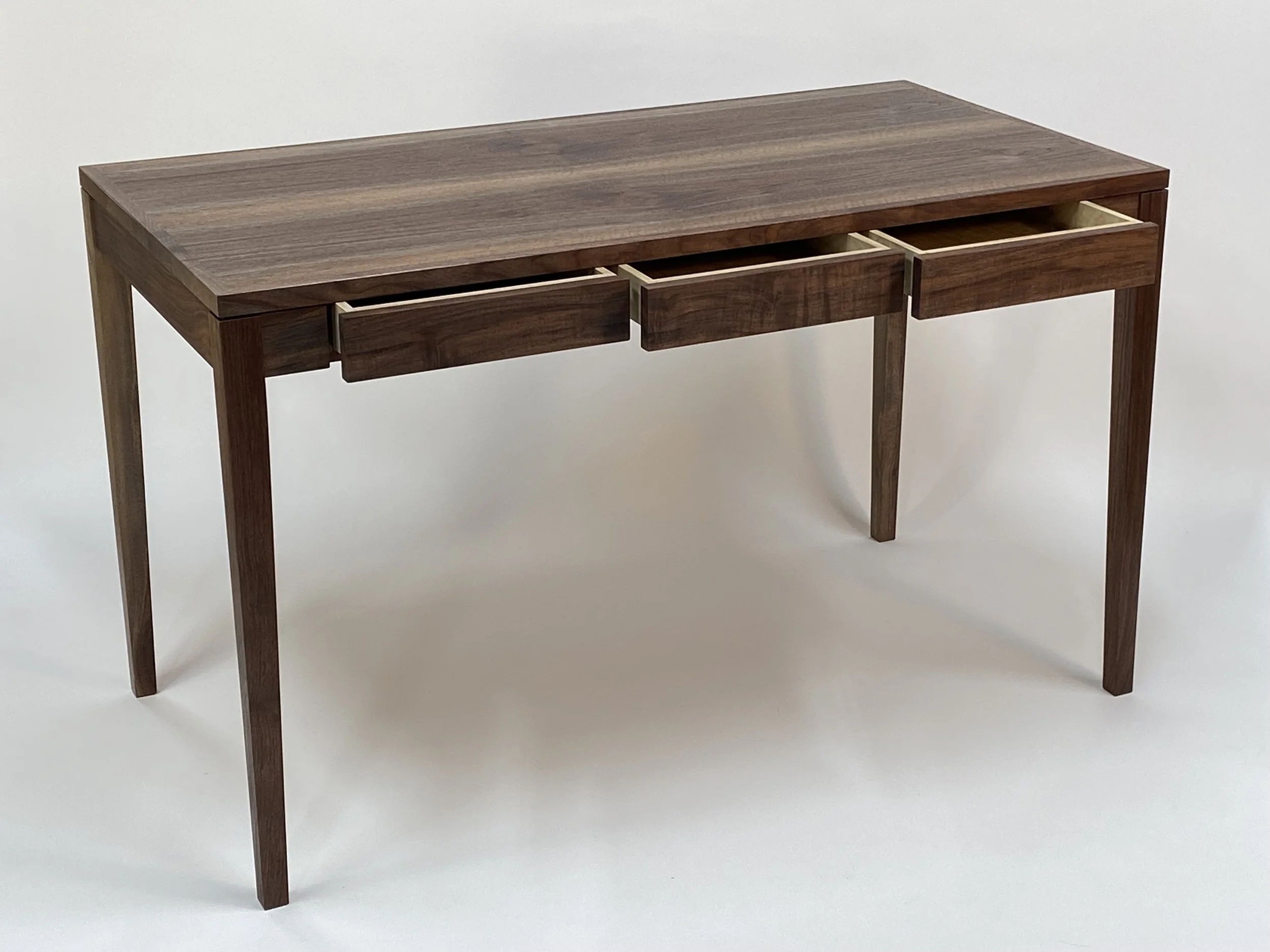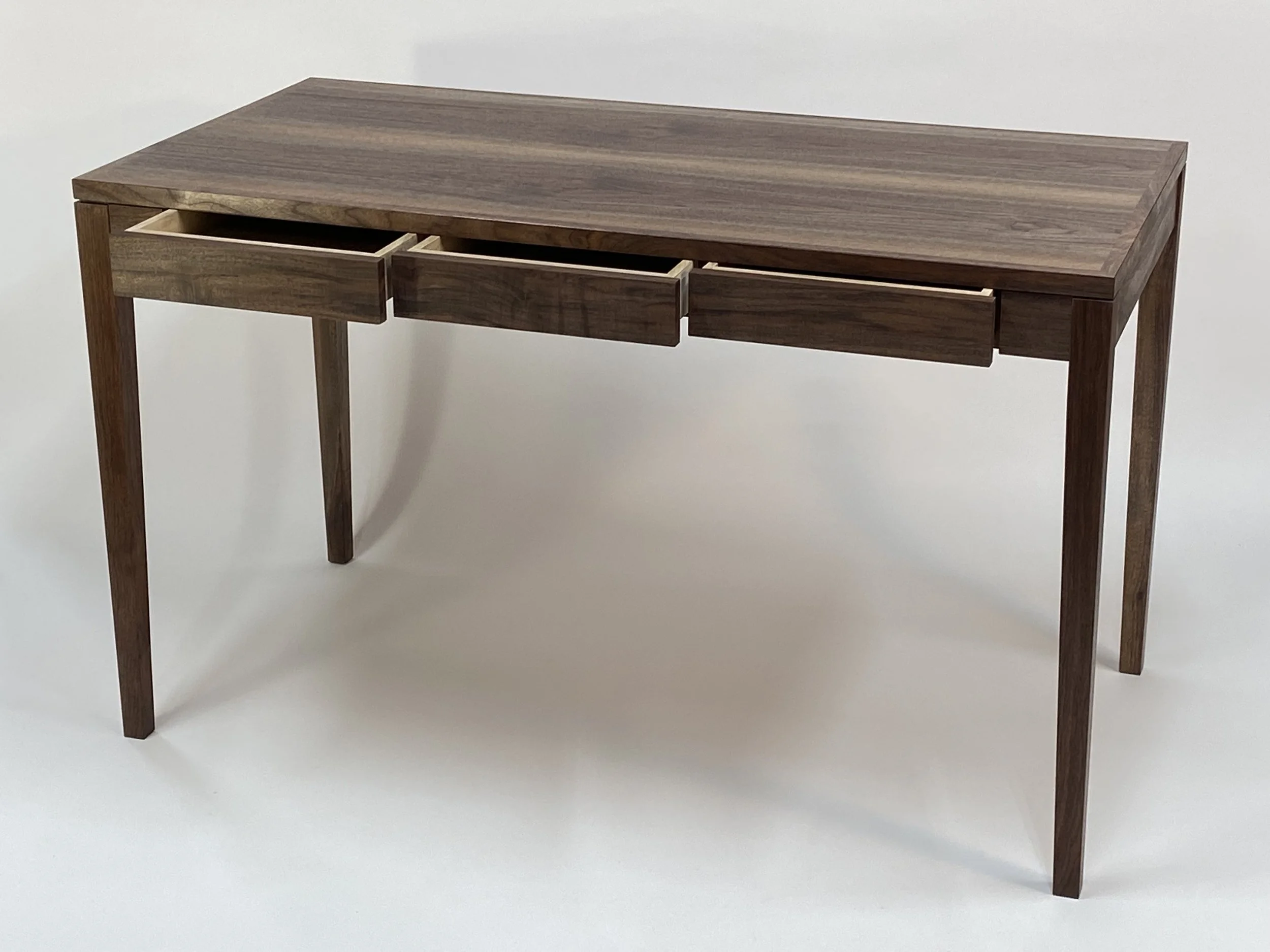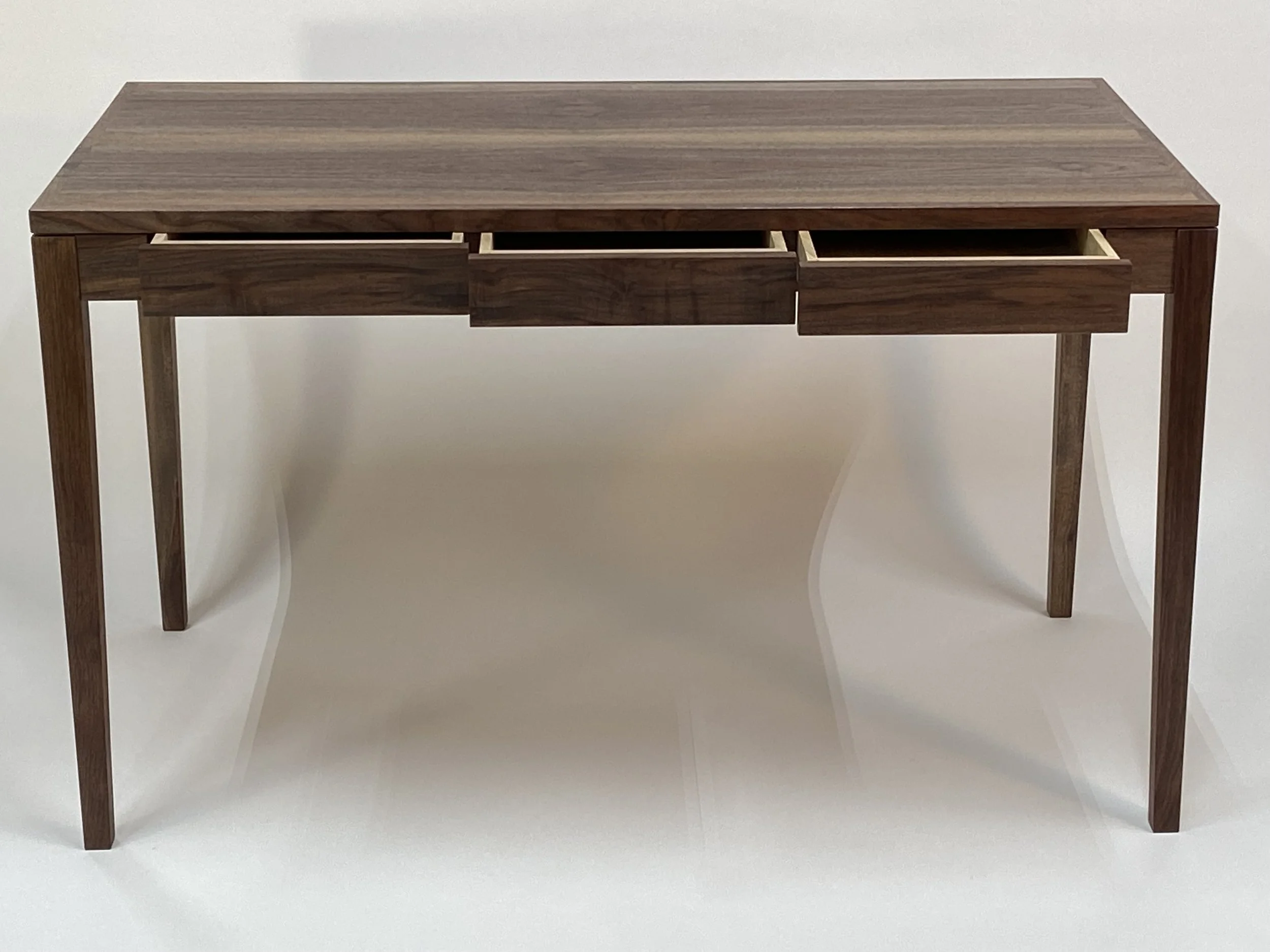 A nicely proportioned and functional desk for computer use and writing made from Oregon walnut.